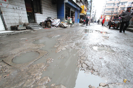 昨天,記者來到位于四季陽光小區(qū)西門外的這條支路,看到道路破損確實(shí)嚴(yán)重,沒走上幾步就出現(xiàn)一個大坑,有的坑中積滿了臟水,有的坑中填了些碎煤渣,巷子旁的一家幼兒園門前,幾只雞不停地啄著坑里的土。“這條‘鬧心路’,下雨天不知道滑倒了多少人。”長年在路口擺地?cái)傎u些小雜貨的秦大媽說。 “這條路連著土鍋一條街和涂山路,是一條老路,曾經(jīng)叫南崗二路,每天有數(shù)萬人經(jīng)過這里。”高大姐在這條路上開了8年的小賣部,小店里常備一把手電筒,就怕夜里摔倒,她說最怕下雨天,“一下雨我就發(fā)愁,積水坑接二連三,顧客來買點(diǎn)東西還要蹚著泥水過,誰愿意來呢!經(jīng)常走這條路的周邊群眾都盼著能夠盡早修一修。